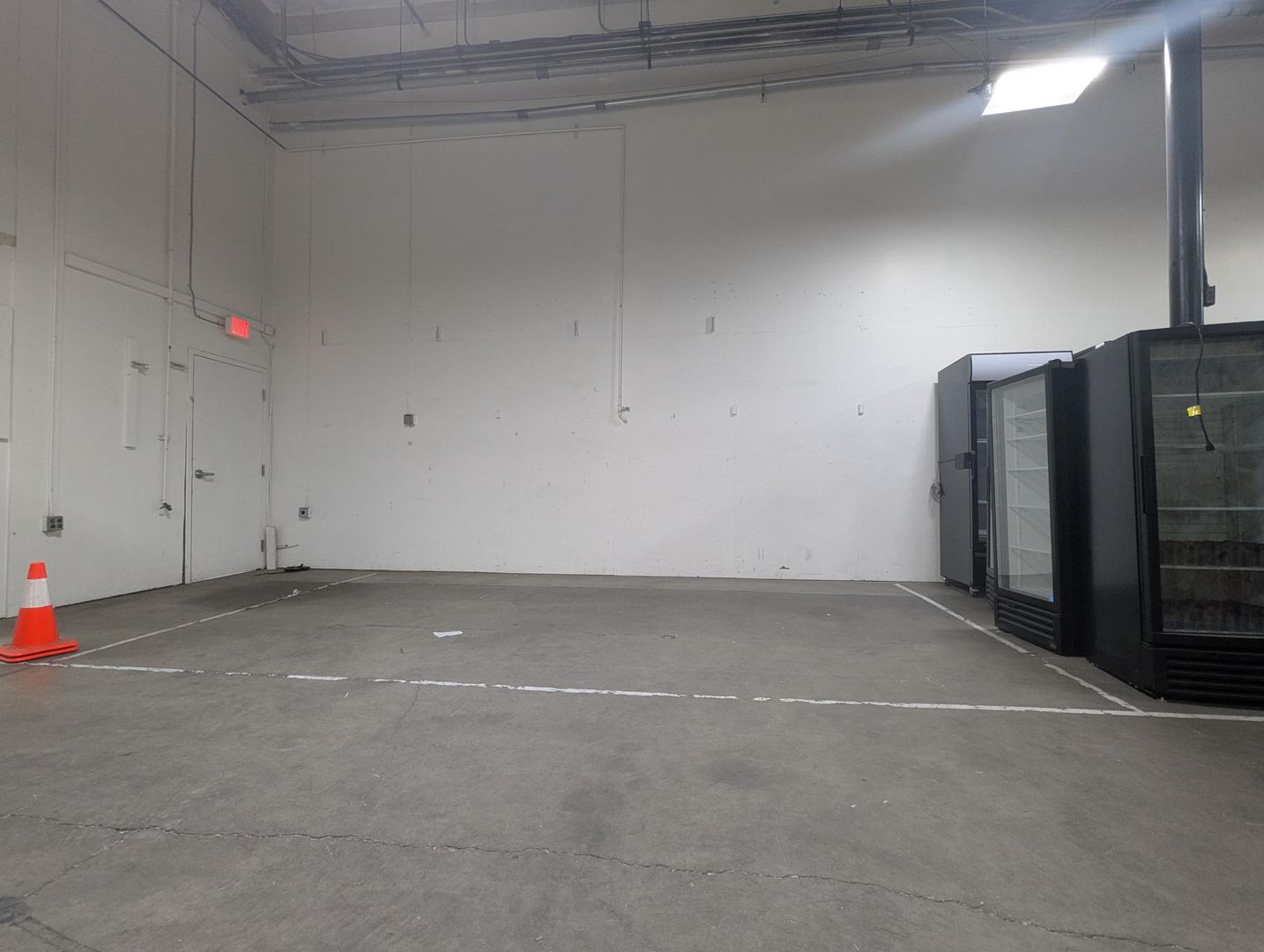 - High ceilings and concrete floors