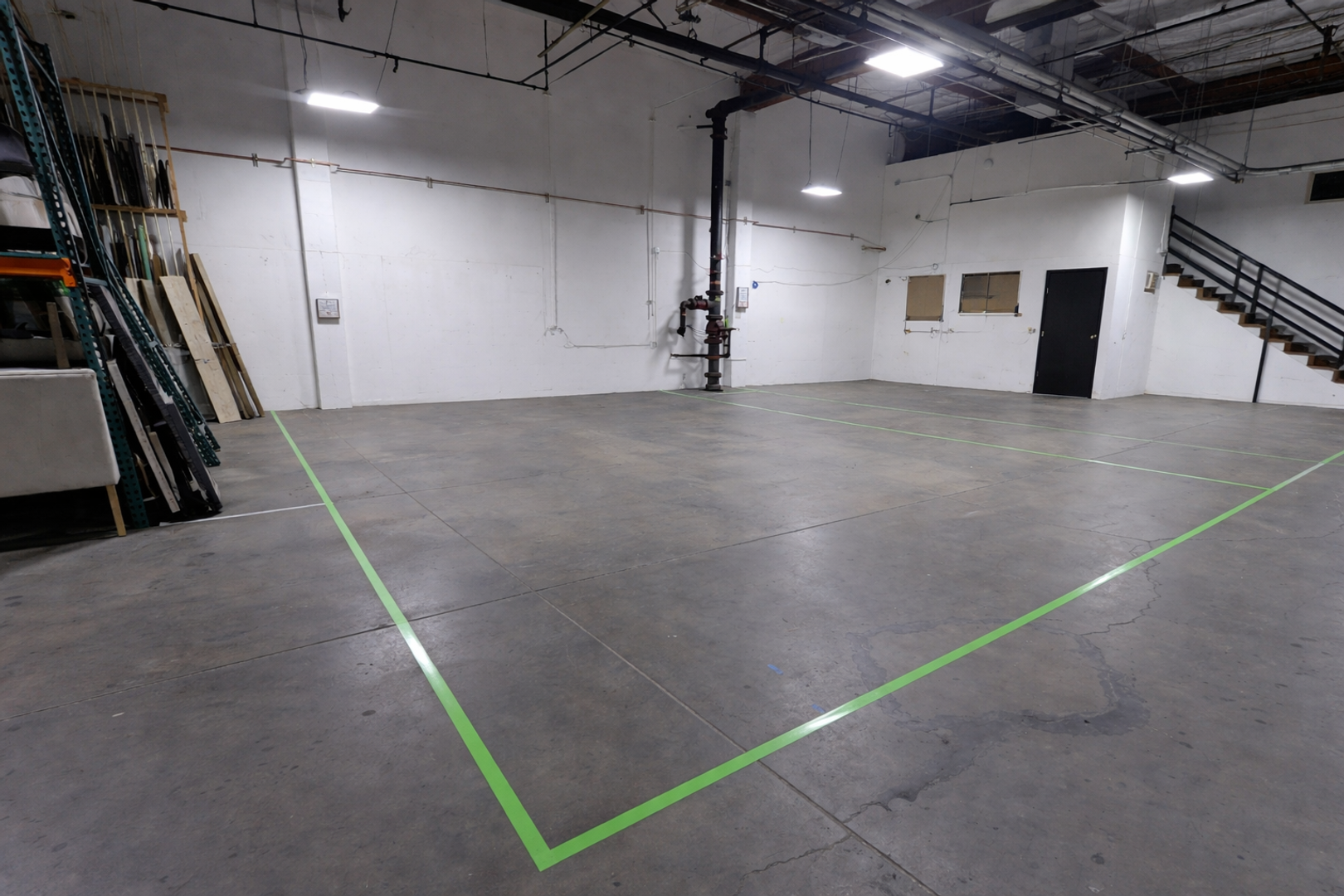 - High ceilings and concrete floors